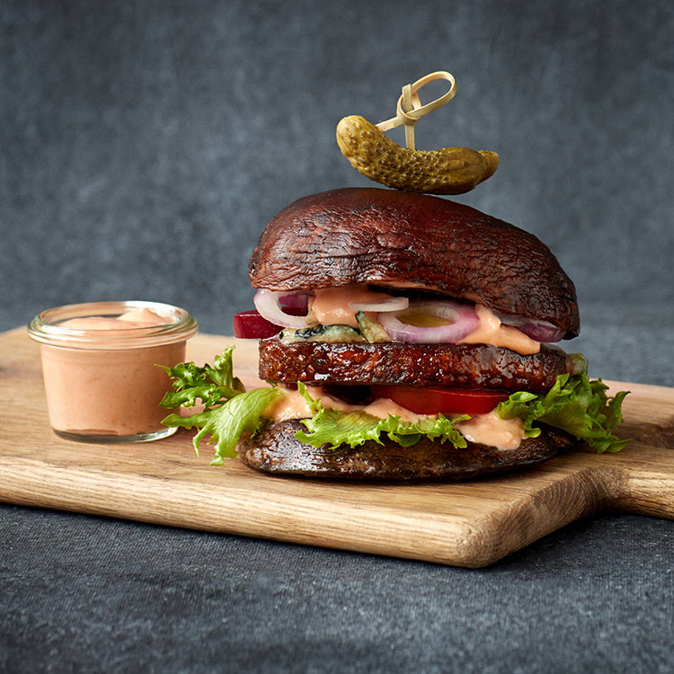 Herkullisessa portobelloburgerissa hampurilaissämpylät korvataan portobellosienellä. Väliin tulee tuoreita kasviksia sekä herkullinen pihvi. Voit valita makusi mukaan joko kasvispihvin tai kypsän jauhelihapihvin. Maista tätä herkkua ja ylläty!