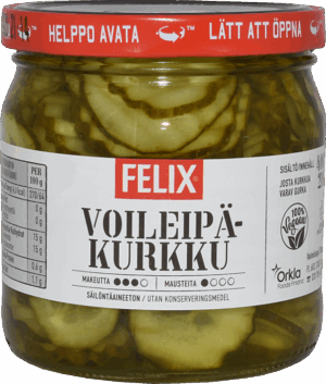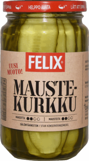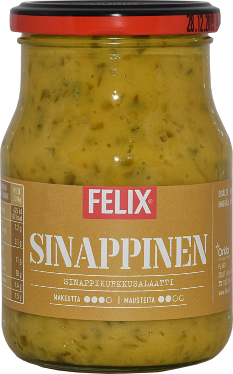 Felix® Sinappikurkkusalaatti on paras kaveri grilliruuille tai hodareiden väliin. Sinappikurkkusalaatti sopii loistavasti myös perinteisen makaronilaatikon tai jauhelihakastikkeen oheen. Felix Sinappikurkkusalaatissa on sopivasti sekä mausteisuutta, makeutta, että sinappia. Vinkki: nopea kylmäkastike syntyy sekoittamalla sinappikurkkusalaattia kermaviilin joukkoon. Kokeile esimerkiksi kasvispihvin seurana. Tuote sopii myös vegaanista ruokavaliota noudattavalle. Felix – herkkuja ruokapöytään®.